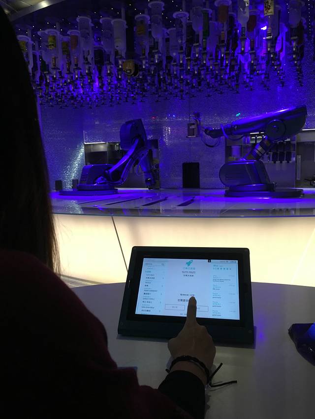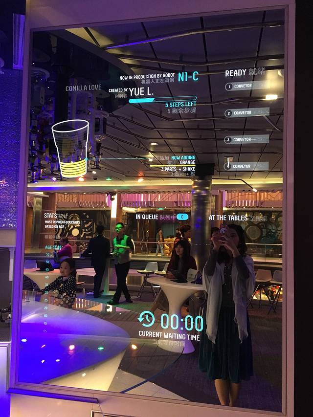 量子号另外一个著名的设施就是机器人酒吧拉~全自动化~在平板上根据自己的喜好可以设置机器人怎么为你调制酒水饮料~超级好玩~~~