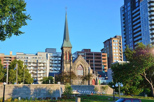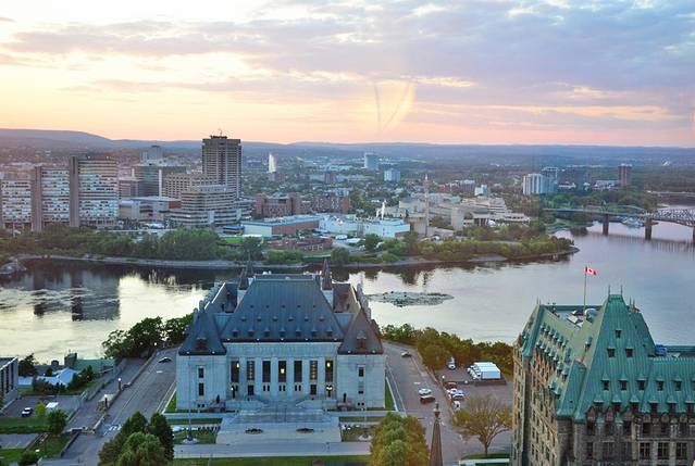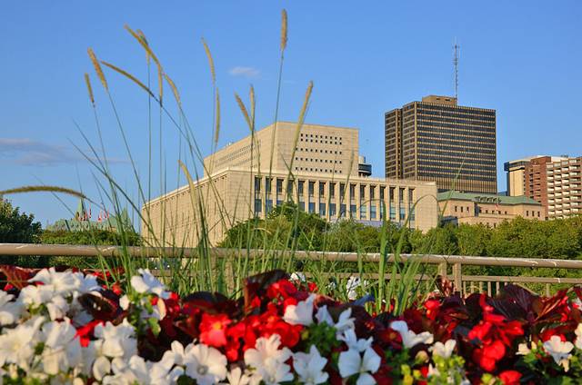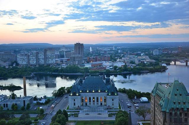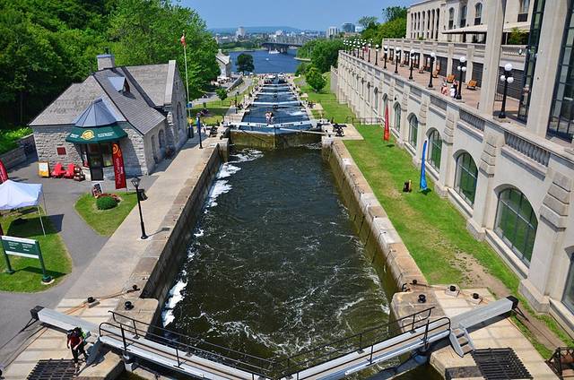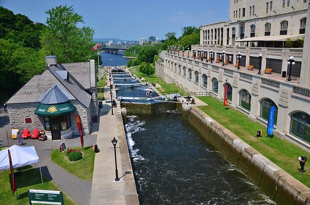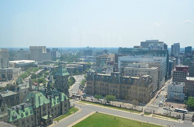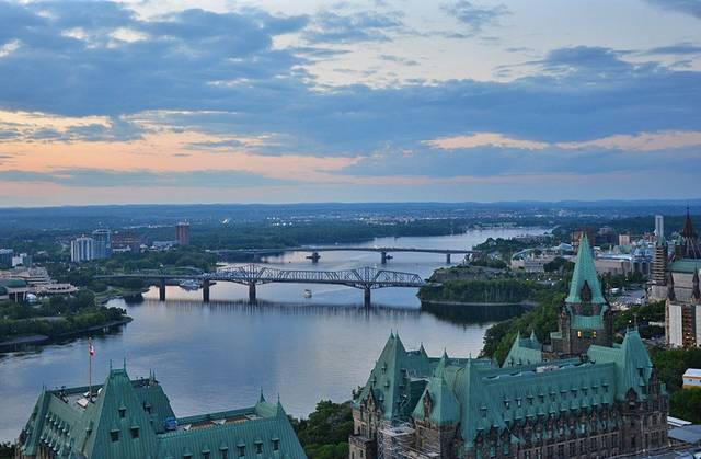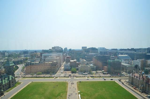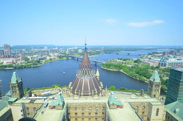 渥太华同时又是一座花园城市,每年有200万左右游客到此观光游览。渥太华市中心区有里多运河通过,里西为上城,这里围绕着国会山,集中了不少政府机关。坐落在渥太华河畔国会山麓的国会大厦是一片意大利哥特式建筑群,中央有陈设着加拿大各省标志的大厅和一个高88.7米的和平塔。塔的左右分别是众议院和参议院,其后是规模宏大的国会图书馆。国会山正南沿着里多运河的联邦广场中央耸立着国内战争纪念碑。在国会大厦对面的威灵顿大街上云集着联邦政府大厦、司法大楼、最高法院、中央银行等重要建筑。里多运河以东为下城区,这里是法语居民集中的地区,拥有市政厅、国家档案馆等著名建筑。
