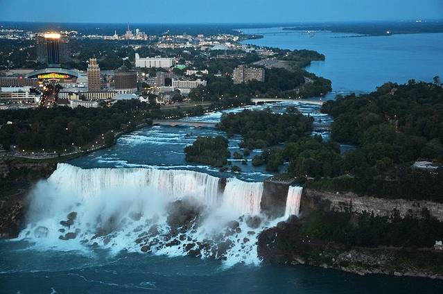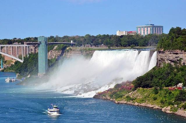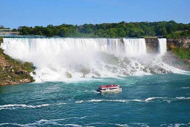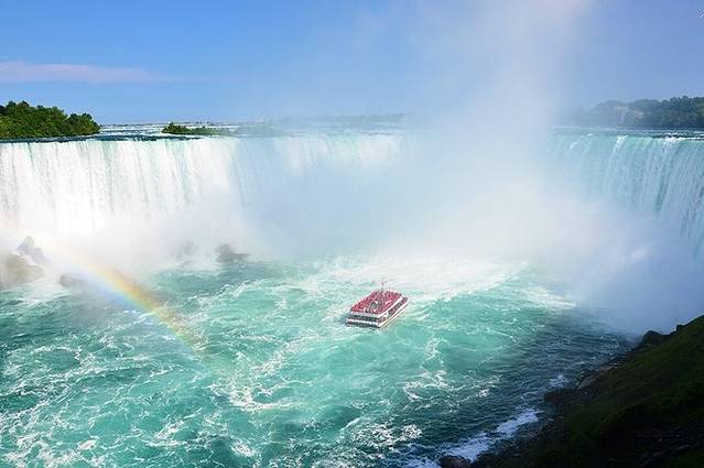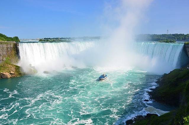 尼亚加拉大瀑布Niagara Falls乃是全世界的第一大瀑布,它所在的尼亚加拉河位于加拿大的安大略省和美国的纽约州之间,平均流量约为每秒5700立方米,与巴西/阿根廷之间的伊瓜苏瀑布、津巴布韦/赞比亚之间的维多利亚瀑布并称为世界三大瀑布。