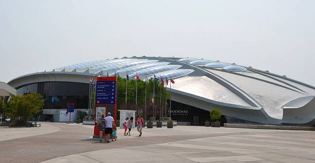 这段短片之后,穿着雨衣的游客们被带进里面的360度环幕电影大厅,演出正式开始。