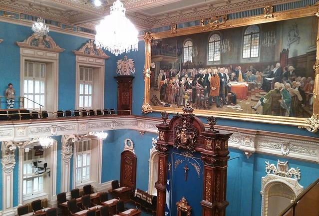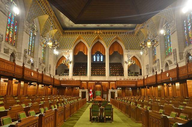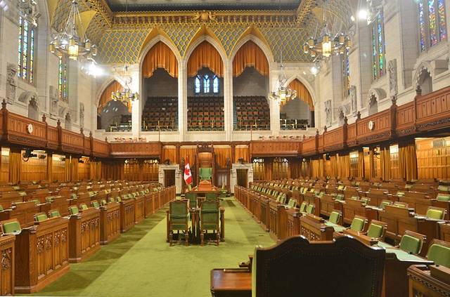 这是第一个重要参观点,加拿大众议院大厅The House of Commons of Canada,也被称作绿厅Green Chamber。