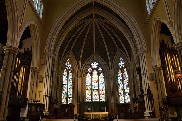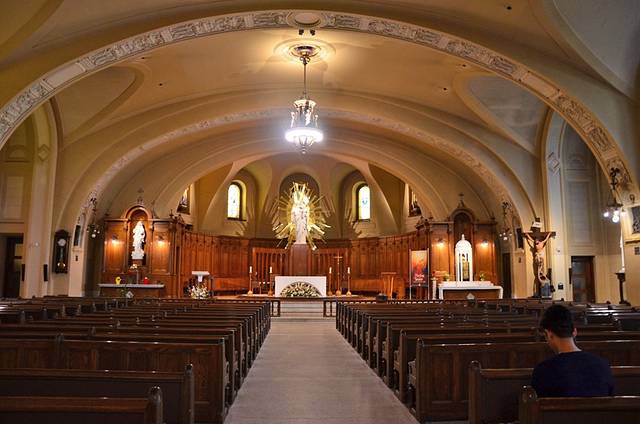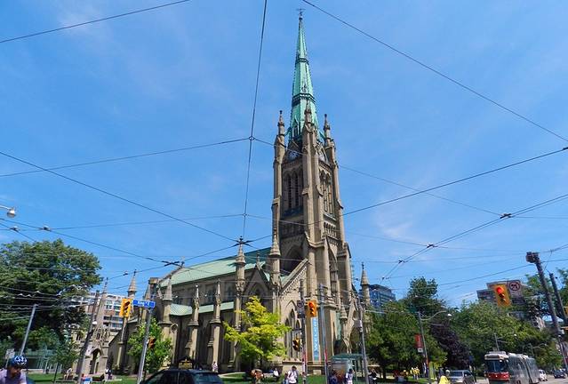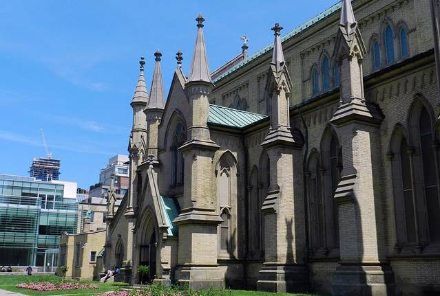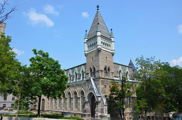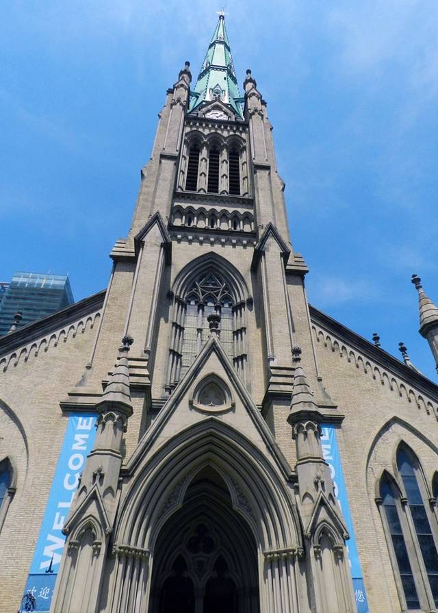 图书馆对面的教堂被阳光照耀着,此时已经是傍晚七点半多了(加东日落时间要比加西要早不少)。