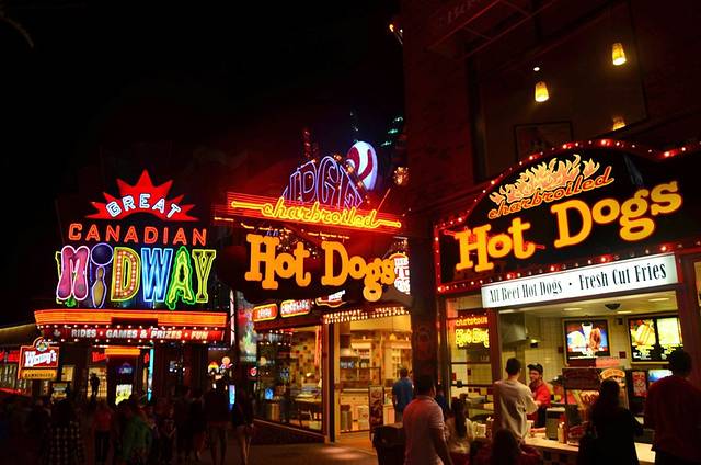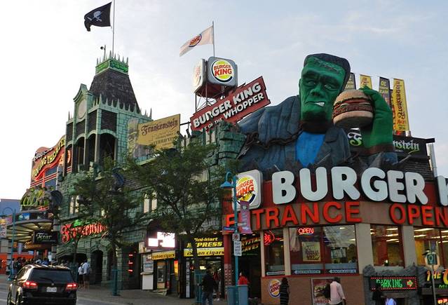 在房间休息了一会儿,傍晚七点钟我们出门,先去克利夫顿山Clifton Hill玩,然后要登顶斯奇隆塔Skylon Tower。