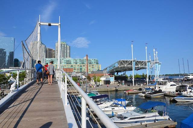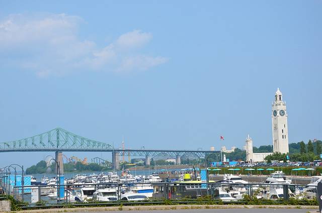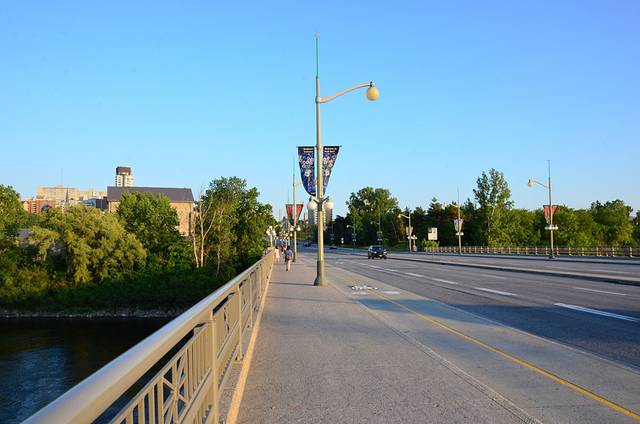 走上朋托波提桥,这是我们来的方向,渥太华市区(身后的方向则是魁北克省的加蒂诺市)。