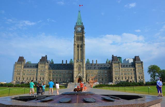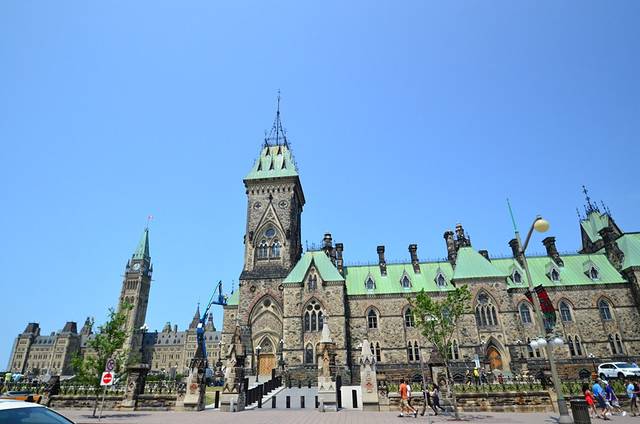 今天最先要游览的景点,也是渥太华最重要的景点就是加拿大国会大厦。国会山广场是随便看的,不过要想要入内参观国会大厦,就必须先去游客中心领票。