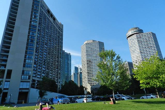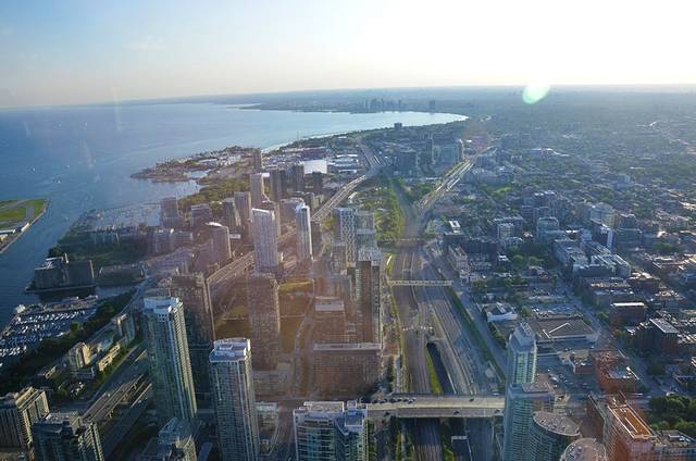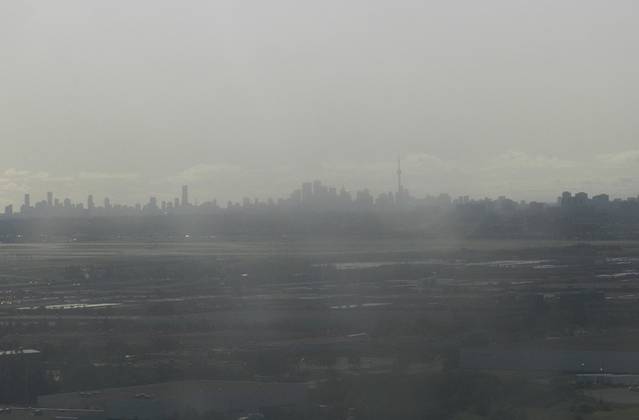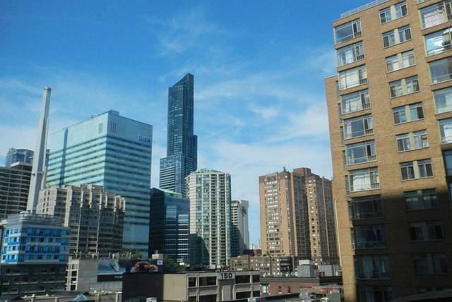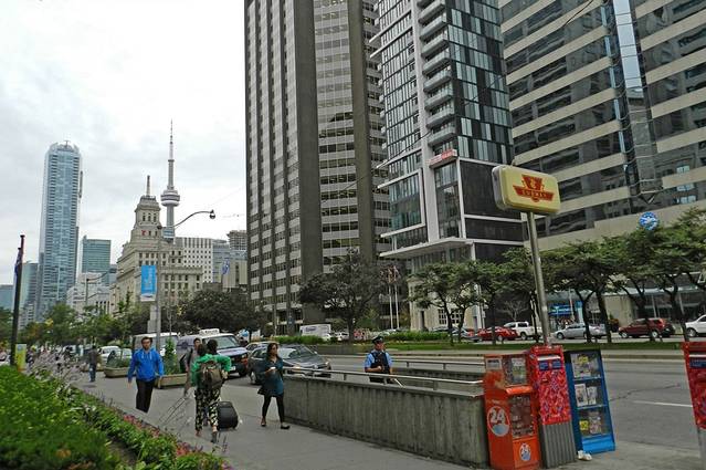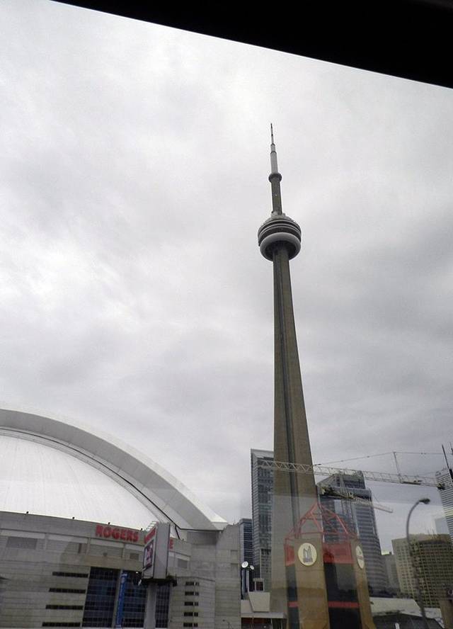 从酒店到汽车站1800米的路程,我们总共走了25分钟。七点半大巴准时发车,九点一刻已经进入多伦多市区。车窗外是熟悉的CN塔,不过天空阴云密布。