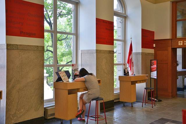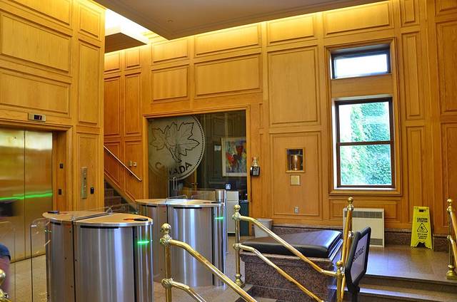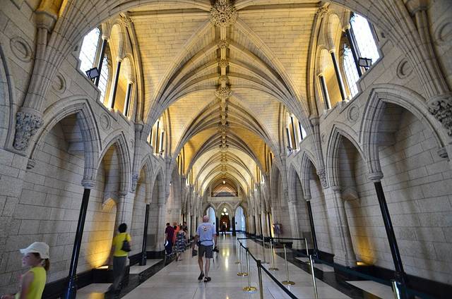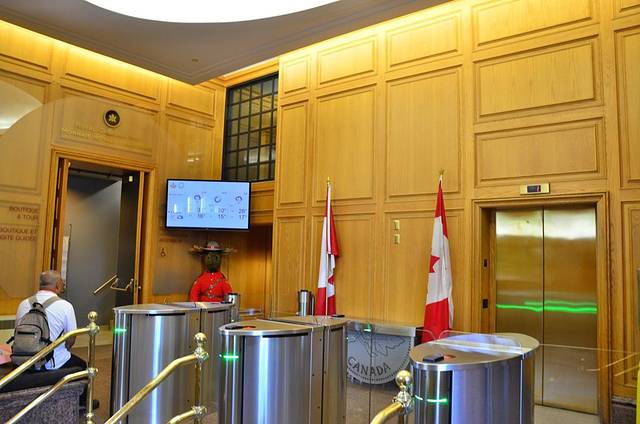 游客中心位于国会山正对面的Metcalfe街,每天早上9点钟准时开门。目前的参观门票分两种,中央区域和东翼,都是免费派发的,游览方式为跟随导游统一进出,所以又根据语言分为英语团和法语团,各个团队有不同时间场次,基本上是英法语间隔半小时交替发团。不过既然有场次,那每场的观众人数就是有限的,所以每天可提供的总数也是有限的。发放规则就是先到先得,如果你指定想要某个场次参观的话,那就早点来排队吧。每场的参观总时长大约在45~60分钟。