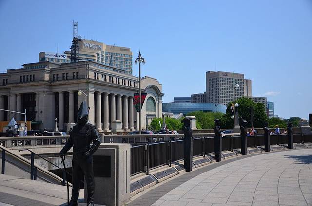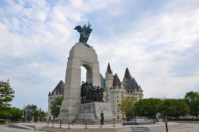历时一个多小时,完成了国会大厦内部的参观。接下来我们将要穿过里多运河,前往加拿大最古老的拜沃德市场。还是往战争纪念碑方向走,在Wellington大街上拍摄的国会大厦中央区域和东翼的合影照片。