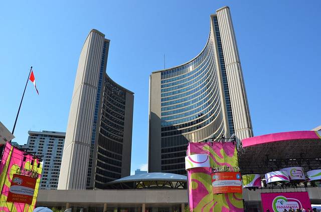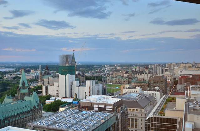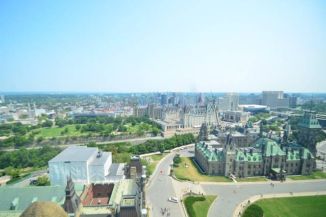 看到楼顶那个圆形观光台没有,等会儿我们就要上去俯瞰下渥太华的市容。