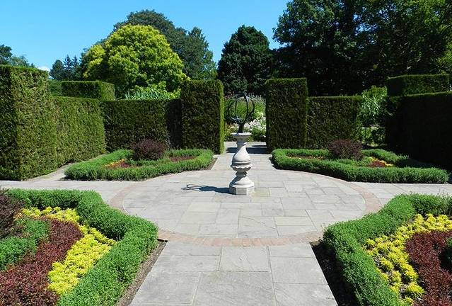 精致的小花园,用修剪的很整齐的树墙作为分隔。