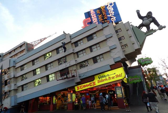 倒掉的大楼,是“信不信由你”博物馆。大猩猩金刚正在塔尖上怒吼。