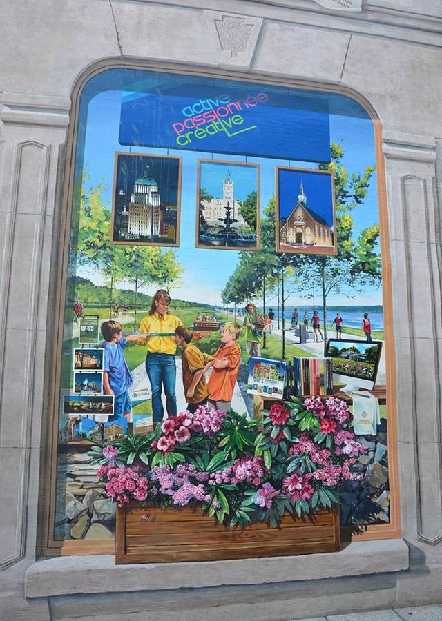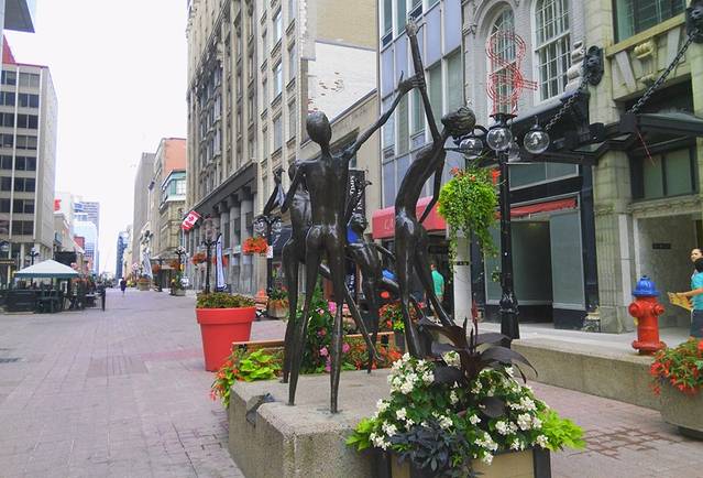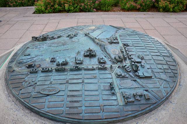 这是渥太华市中心的沙盘雕塑,在沙盘正中心,河边的一组建筑物就是国会大厦。最左边的桥则是我们要去的朋托波提桥(看着远,其实很近的)。