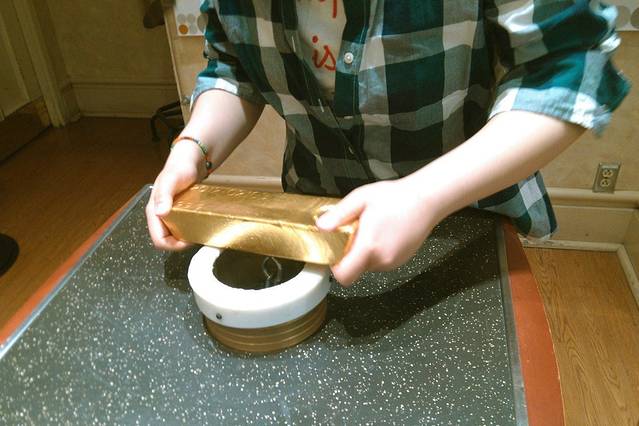 花钟的内部空间是个小小的展览厅,陈列着各种照片和图纸。这是1950年绘制的构造图纸。