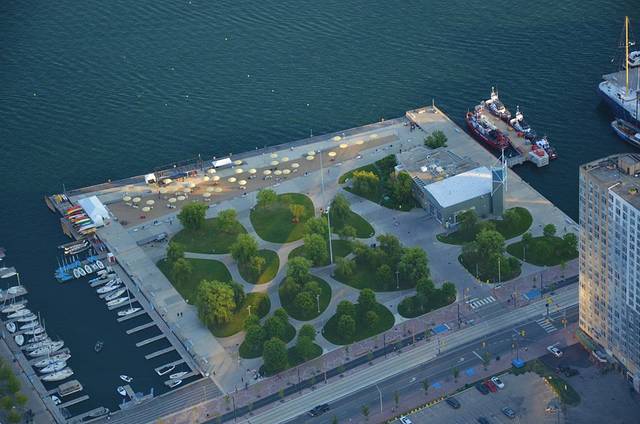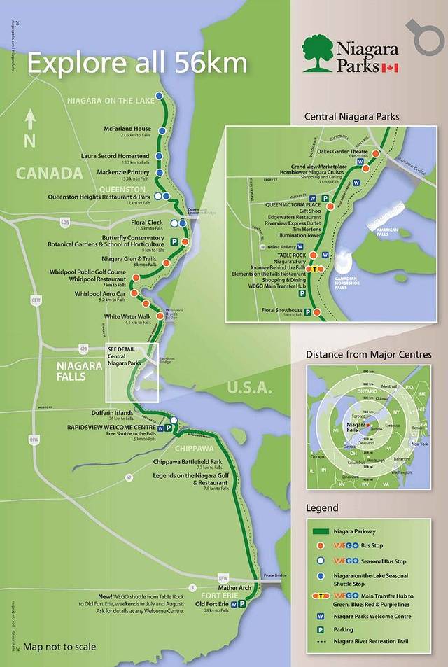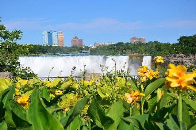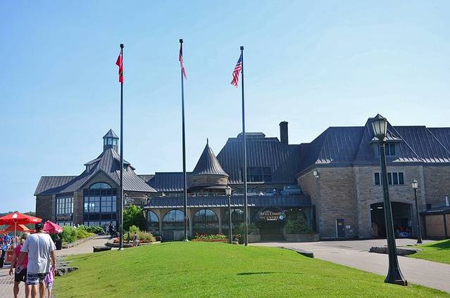 维多利亚女王公园再往北没多远就是游轮码头了,加拿大方面的“Hornblower”号从这里起航。从岩石瞭望台到此大约1300米,慢慢逛二十分钟的样子。当然也可以乘坐WEGO绿线大巴,两站路,下车站叫做“Hornblower Niagara Cruises”。