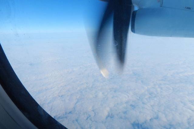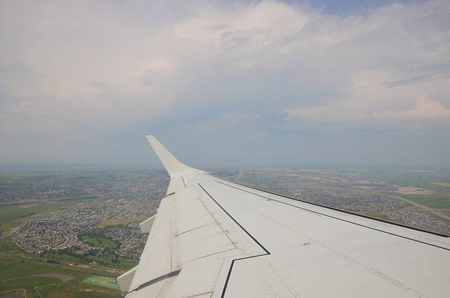 航班还是晚点了会儿,11点半才起飞。天空薄雾蒙蒙,再见了,美丽的卡尔加里;再见了,迷人的落基山~~~