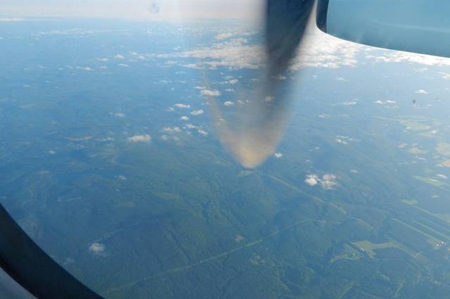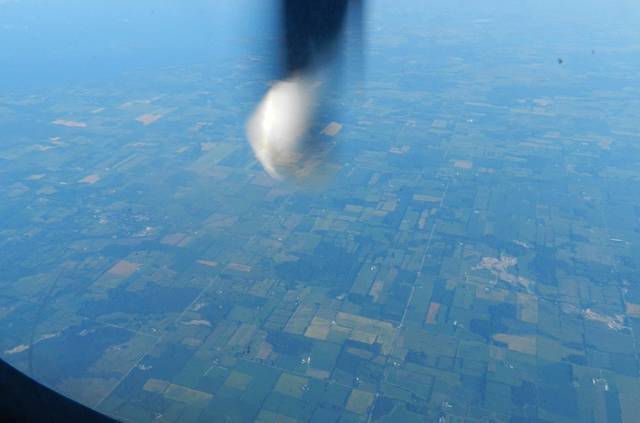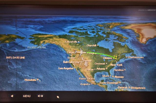 由于渥太华所的地区使用的东部标准时间,与卡尔加里的山地时间有两小时时差,飞机即将降落时已是当地时间下午的17点15分,机翼下一片葱茏。