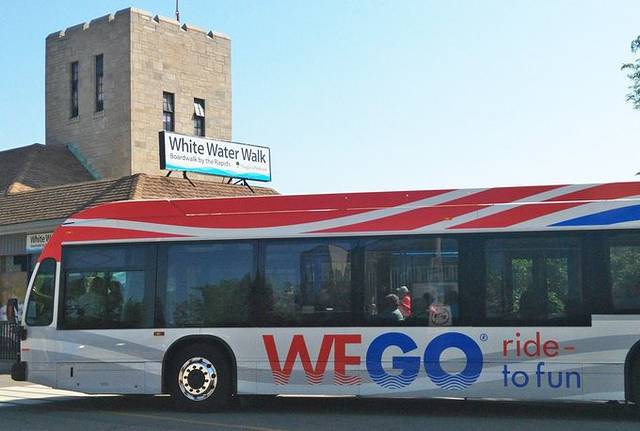 WEGO的绿线大巴来了(WEGO有好多条线路,不过这一带距离核心景区比较远,只有绿线。大瀑布在正南方向,但我们的计划是先往北走),上车时要把“代表证”在车门边的刷卡机上刷一下,跟国内的公交车差不多。