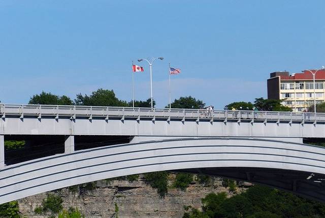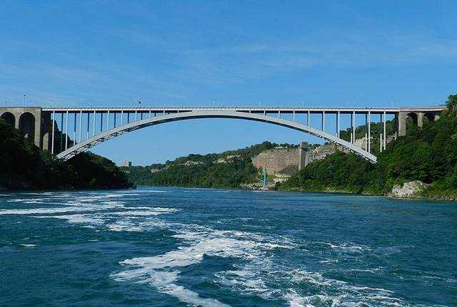 满载百余名乘客的游轮离开码头,驶入尼亚加拉河心,从船尾望去,彩虹桥飞架东西,美国和加拿大之间天堑变通途。