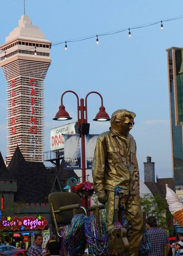 克利夫顿山就是尼亚加拉瀑布市区的一条街,不过很有特色。从酒店走过去900米左右(所以我说只转市区的话不需要买公交Pass的)。路过“Hard Rock”,这已经是我们在第N个国外城市看到Hard Rock了,标志性的大吉他让人难以忘怀。