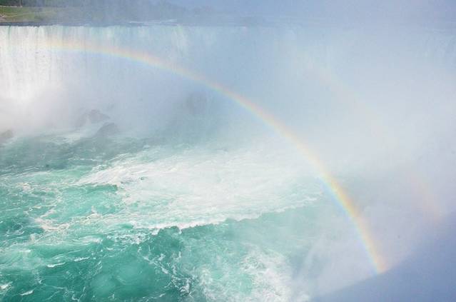 尼亚加拉大瀑布实际由三部分组成,从大到小,依次为:马蹄瀑布Horseshoe Falls、美国瀑布American Falls和新娘面纱瀑布Veil of the Bride Falls。我们此刻看到的便是最大的马蹄瀑布,它的主体部分位于加拿大境内,因形如马蹄而得名。