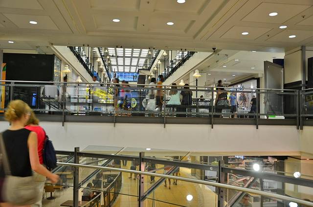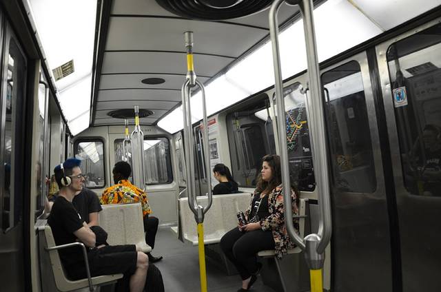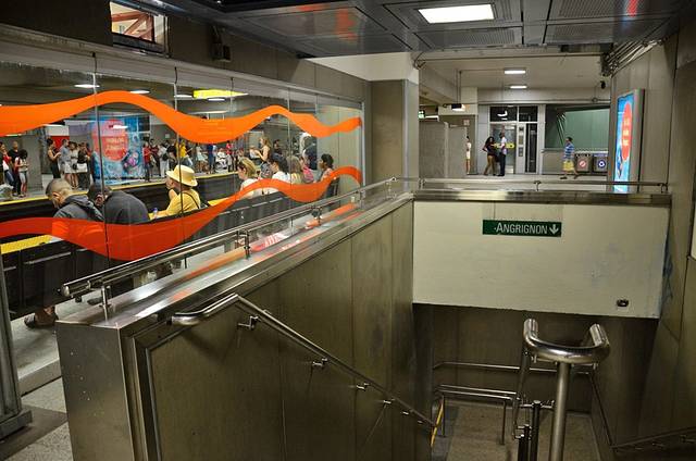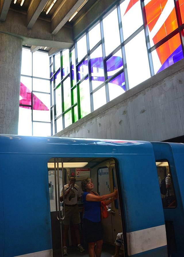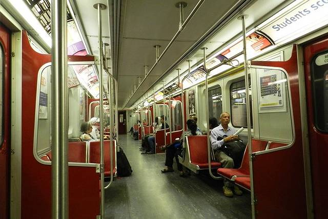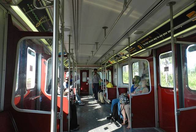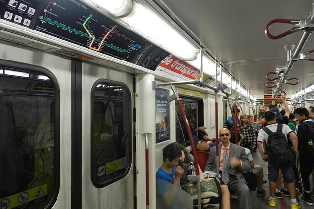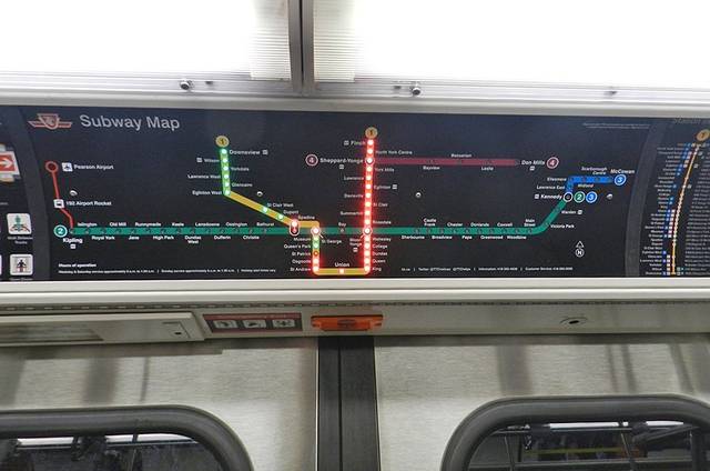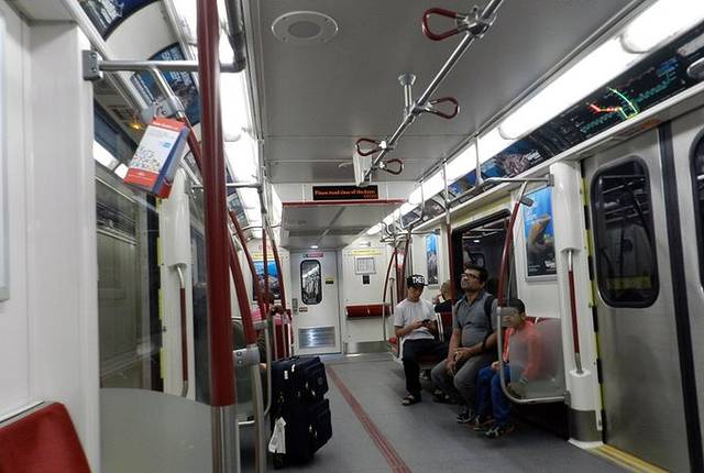 一家三口拉着行李来到St Patrick地铁站。买好单程票,又坐上了地铁1号线。注意到车厢顶部的拉环没有,这个跟我们国内地铁不太一样,平时是弹起来平躺着的,用力拉才会下来。我想可能是因为外国人比较高大,这样的设计是防止拉环撞头吧。最好的一点是,这个拉环只在这一个方向能旋转,前后方向则是不能晃动的,不像北京地铁的,拉着它还会甩来甩去。