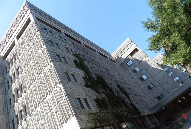 东翼建筑群。注意最右边的塔楼,被朋友们形容为“外星面孔”、“鬼脸建筑”,仔细看起来确实有点像一幅面孔。