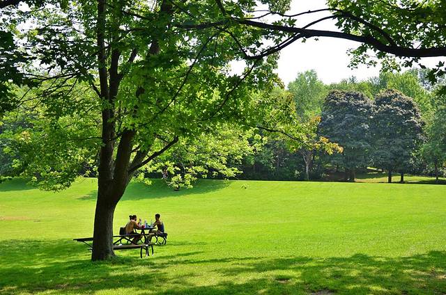 植物园里面绿草如茵,茂密的树叶遮蔽了阳光,感觉温度要低下来好几度。