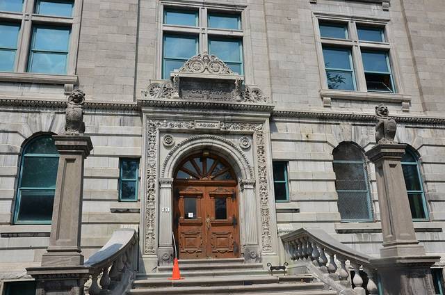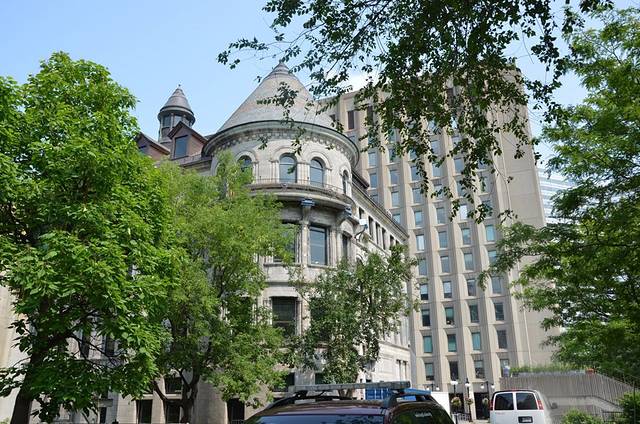 国会大厦后面的维多利亚图书馆外景。这座建筑物是完全独立于大厦主体的。