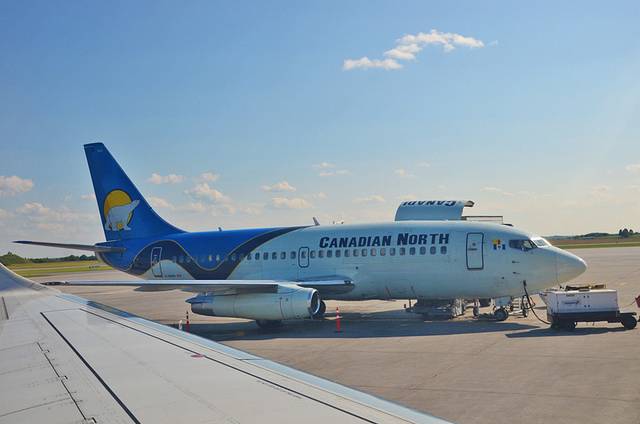 飞机驶过滑行道,旁边是一架加拿大北方航空的飞机,尾翼上的标志是可爱的北极熊。据介绍这是一家廉价航空公司,总部设在育空地区首府怀特霍斯,经营育空地区、西北地区、艾伯塔省以及美国阿拉斯加等地的业务,如果去看北极光,就用得到它了。