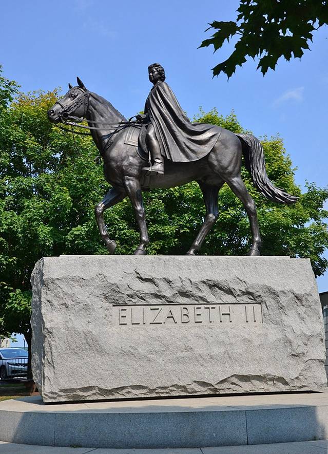 英王伊丽莎白二世威风凛凛的骑马塑像。