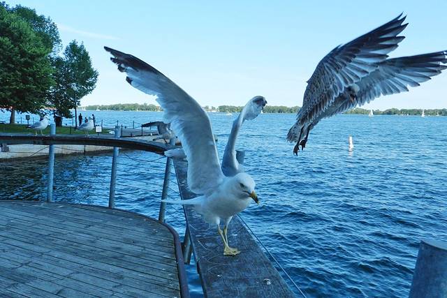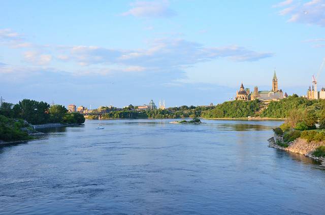 走到渥太华河的中央了,河面还是比较开阔滴。左岸是魁北克省加蒂诺市,右岸是安大略省渥太华市。