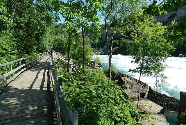 我们沿着大瀑布边上的Niagara Pkwy慢慢往北走,马路左手边是树木葱笼的维多利亚女王公园,不过大家的目光还是一直被尼亚加拉河这一侧所吸引,这里距离马蹄瀑布比较远,可以轻松拍出全景。