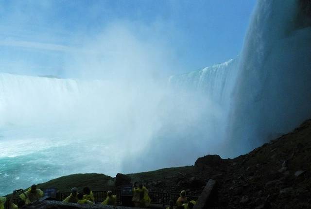 大瀑布此刻就在身边,在震耳欲聋的轰鸣中,在这个几乎伸手即可触摸到瀑布的地方,似千军万马奔腾的瀑布洪流距离游客只有咫尺之遥,其波澜壮阔令人无不叹为观止。