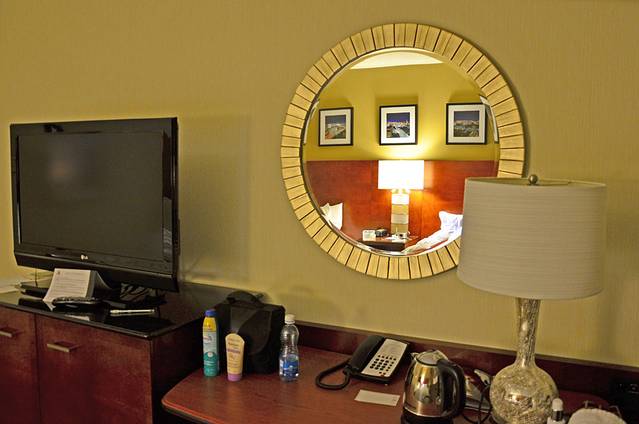 酒店的房间,挺干净的,不像网上的评价那么糟。最主要是性价比超高,人民币400多块钱住在这个位置真值。