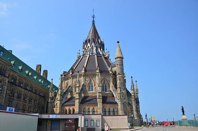 国会大厦建筑群中显眼的褐色圆形尖顶是维多利亚图书馆。
