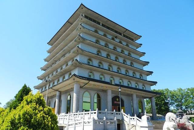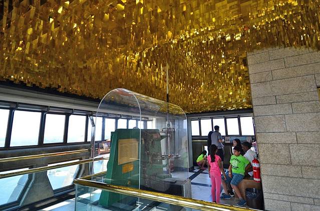 这是和平之塔的顶端钟楼,据介绍其内收藏了总重近60吨的53座大钟,其中最大的重达10080公斤,而最小的只有4.5公斤。