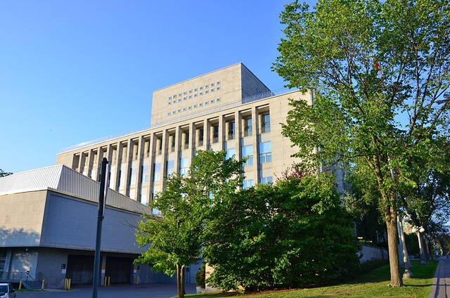 放下行李,我们先到楼下吃饭,转了一小圈最后还是在Tim解决了。然后按计划往西南走,去渥太华河上的朋托波提桥Portage Bridge。先路过加拿大国家图书档案馆Library and Archives。