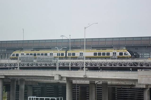 窗外是皮尔逊机场轨道交通——机场快线,从这里只需半小时即可抵达市中心的联合车站。
