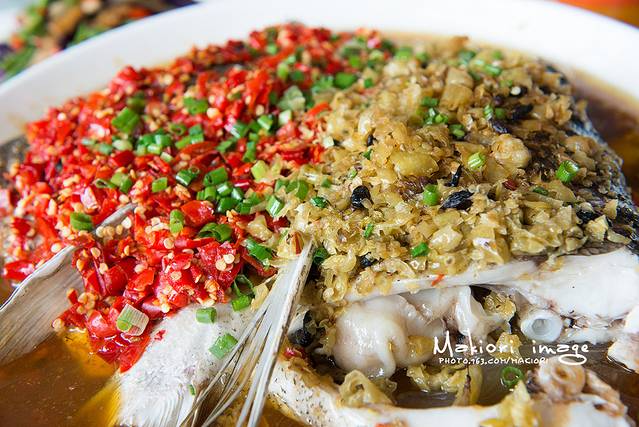 剁椒鱼头是湖南湘潭以及湘赣交界地方的一道汉族传统名菜,属湘菜系。以鱼头的“味鲜”和剁辣椒的“辣”为一体,风味独具一格。特别指出的是此菜所使用的油是茶油。湖南湘潭的剁椒鱼头是在大街小巷的大小餐馆酒店都可以吃到的。