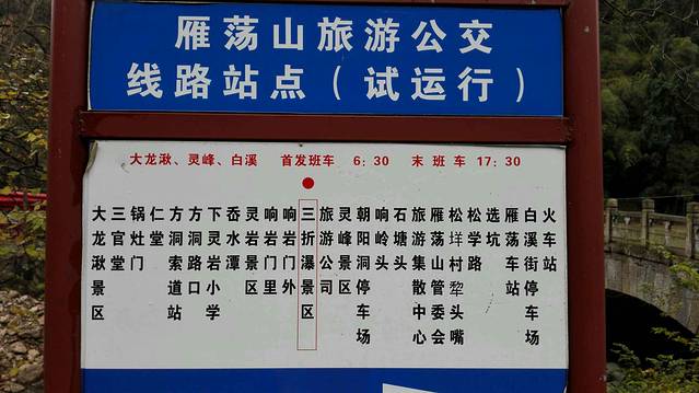 旅游公交首班6:30,末班17:30,平均15分钟一班,15:40后每20分钟一班