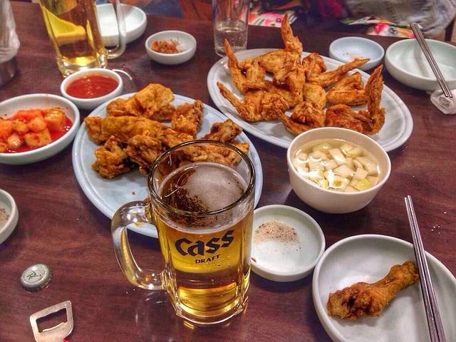 听说在韩国玩,炸鸡和啤酒比较配哦