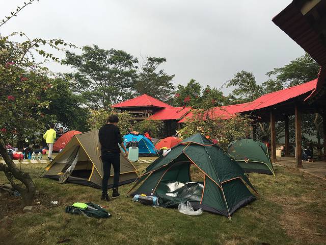 好多家庭搭帐篷,进行烧烤