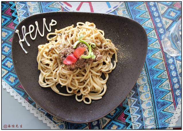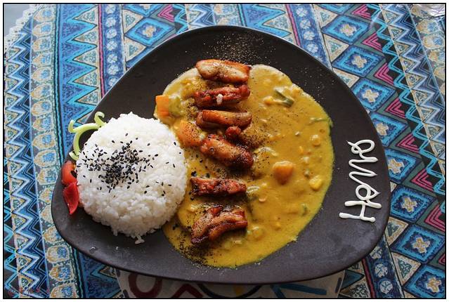 强烈推荐招牌咖喱鸡排配海怪咖啡+柠檬金枪鱼意面~传说中的大理石蛋糕店员说店里没这个甜点的,囧~