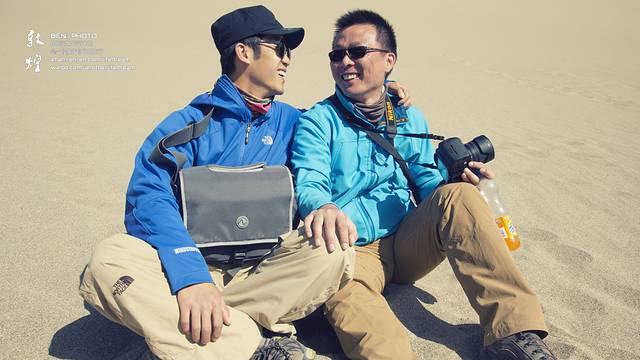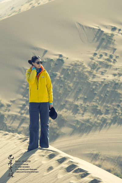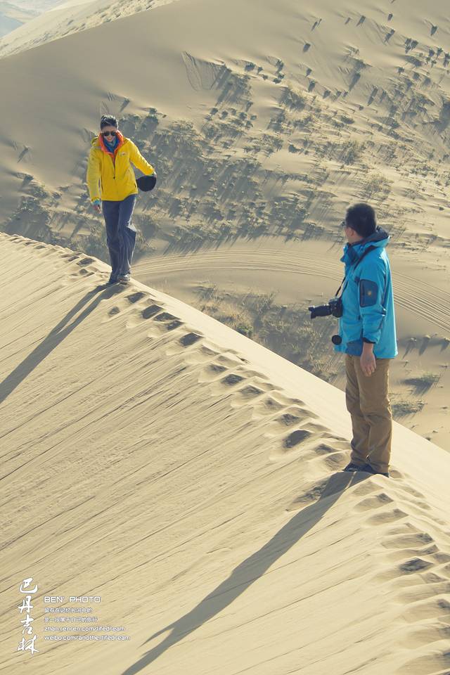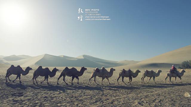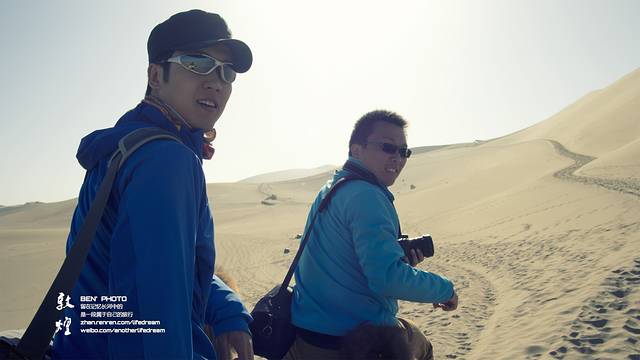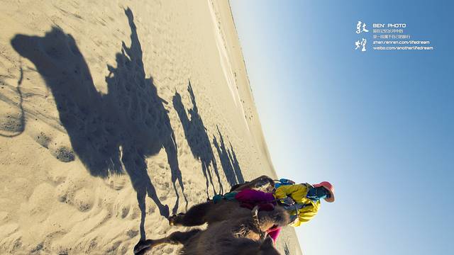 牵骆驼的大叔好说歹说给我们拍照,当然是付费服务。看在人家年纪大跟着我们走这么长路的份上,拍就拍吧。