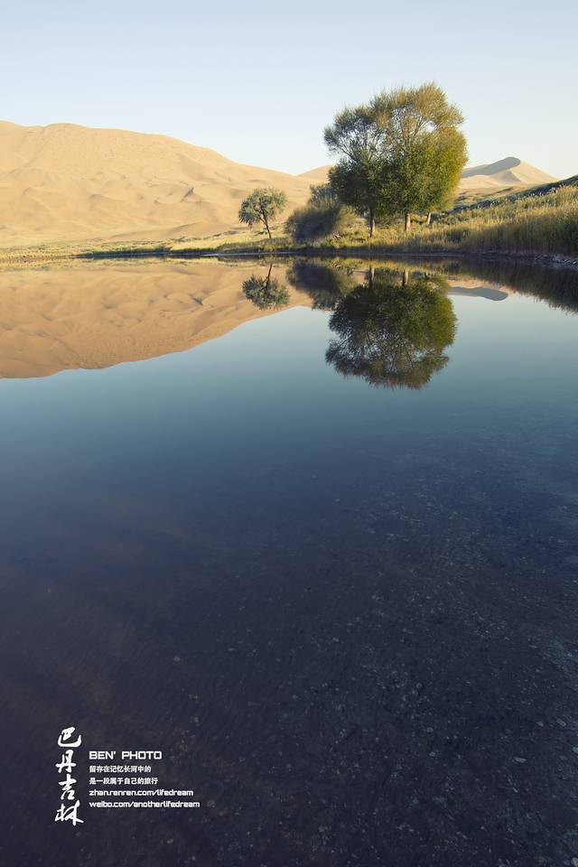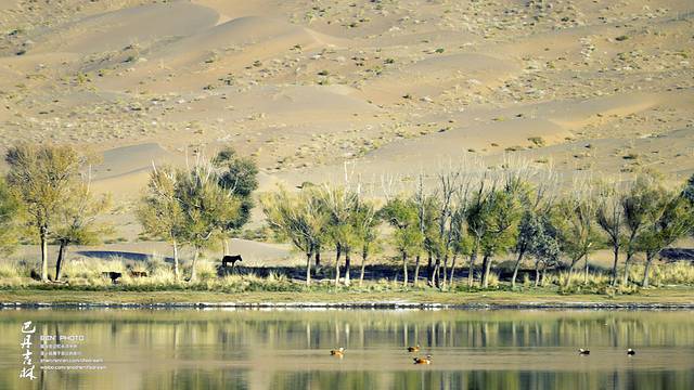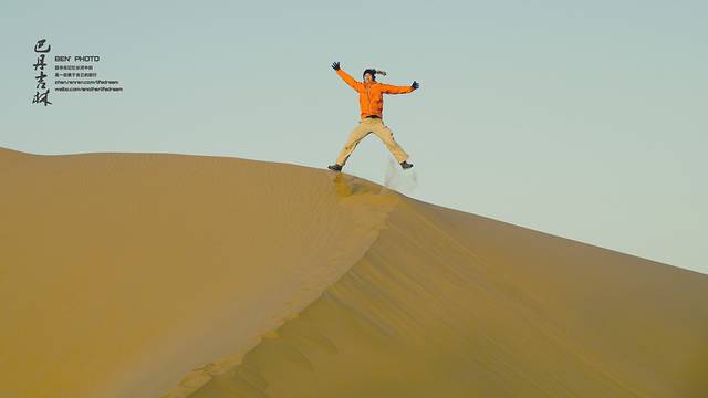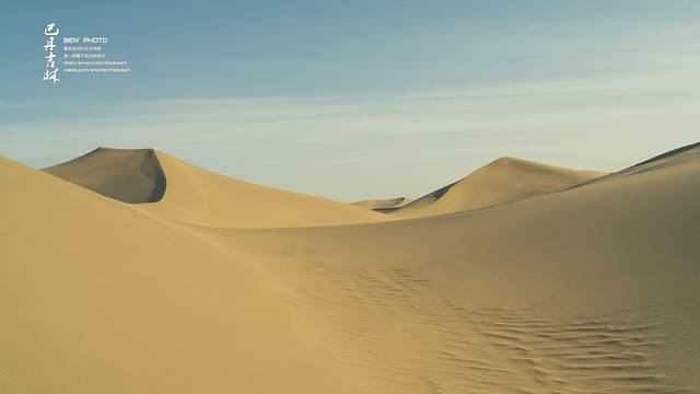 没看攻略之前,我所知道的巴丹吉林,只有在中国国家地理05年那本《选美中国特辑》里的一个标题:中国最美的沙漠,上帝画下的曲线。借用中国国家地理中的内容,简单介绍下:巴丹吉林沙漠位于内蒙古阿拉善高原西部,面积4.4万平方公里,是我国第三大沙漠,其中,流动沙丘面积占83%。“巴丹”是人名,他在这里发现了60个湖泊,“吉林”是蒙语里“六十”的意思。(也有传说认为“吉林”是藏语,意为“誓言沙语”,和天神发怒降下沙雨有关。其实在整个沙漠腹地共有144个被当地人称为海子的湖泊,其中仍然有水的是72个)。巴丹吉林沙漠之所以有如此美丽的曲线和高耸的沙山,正是因为沙中富含水分的关系。