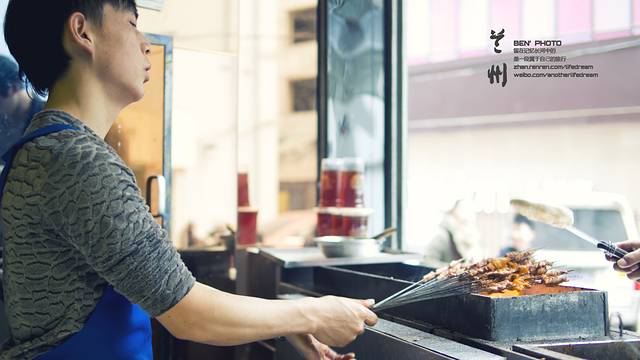 三个人其实都吃得挺饱的了,在佳佳的药膳鸡提议一次又一次的被我们无情的“忘记”之后,我们找了这家烤肉,籍此弥补他内心的创伤。这家的烤串品种很多,各种羊肉、羊筋什么的都分的很细,味道也很赞。