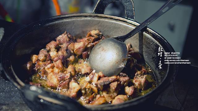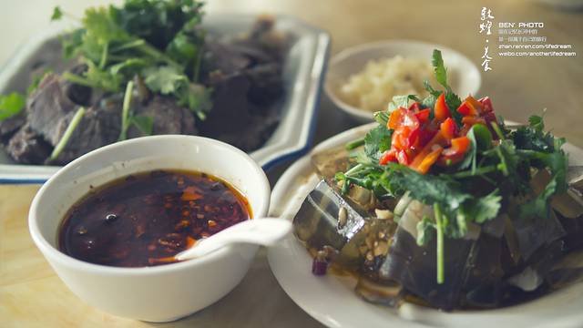 第一张照片是敦煌大名鼎鼎的羊头了,我们没人敢吃。老板娘倒是很热情的,随便我们拍照。