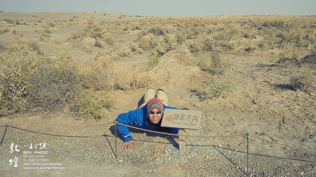第四站,汉长城。抛弃它具有的特殊意义,我将他描述为坐落在茫茫戈壁之中的一排低矮的土墙。然后,我就在旁边逗狗玩儿,压根就没靠近。