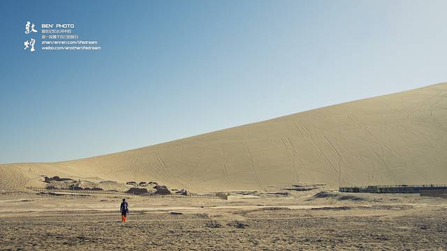 又是一个大早,出来这么多天就没好好睡过一个懒觉。全副武装出了旅舍,早餐还是在门口的羊肉粉汤解决。紧接着打了个车,奔鸣沙山、月牙泉去咯。
