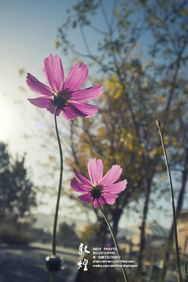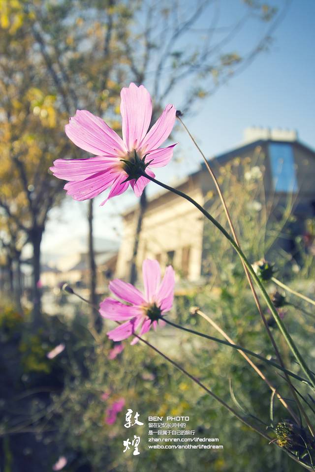 鸣沙山、月牙泉售票处门口花坛里的小花,大多数已经枯萎,难得找到两朵盛开的。时间正午,算是充分利用这不利的光线拍摄吧。